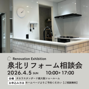 お知らせ 【2026/4/5開催】泉北リフォーム相談会 at タカラ南大阪ショールーム